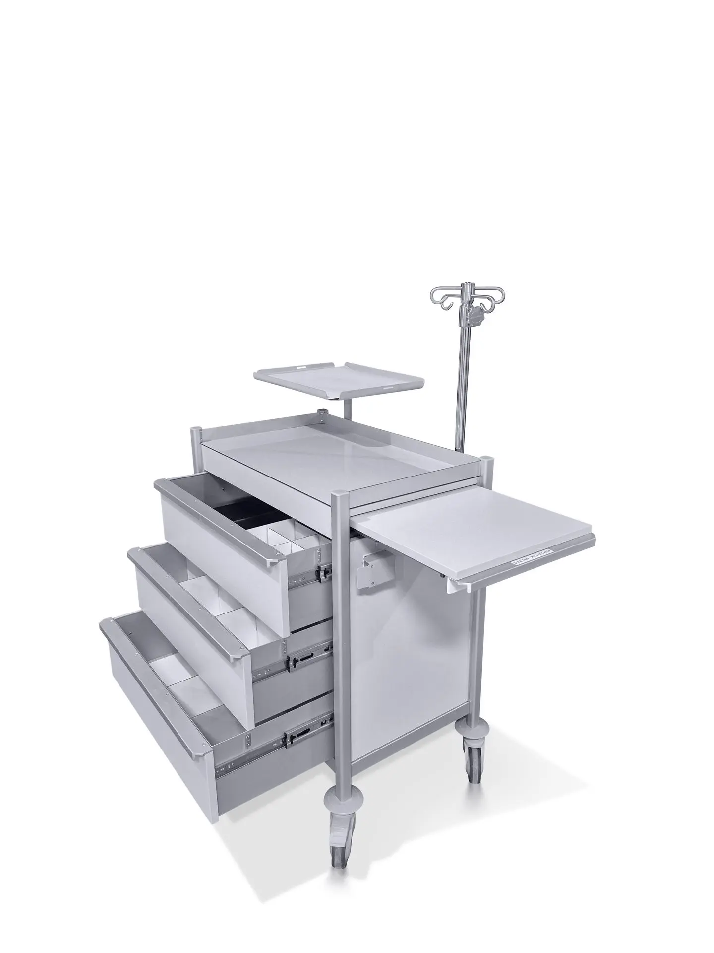 Our offering includes defibrillator trays, IV poles, oxygen cylinder holders, locking systems, and pull-out work surfaces—allows each trolley to be configured to exact operational requirements, while maintaining consistency in build quality, mobility, and infection control.
